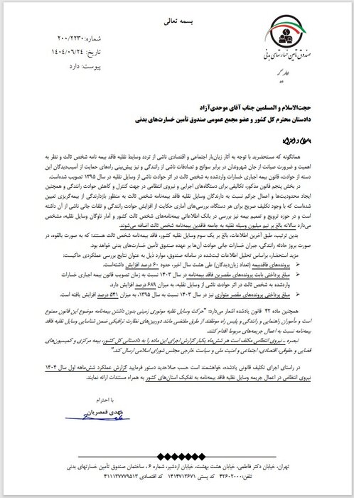 نظارت ناکافی و افزایش روز افزون وسایل نقلیه فاقد بیمه نامه