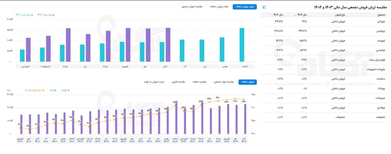 یکی از نکات قابل توجه در گزارش آبان، رشد مقداری فروش در دو گروه کلیدی «خوراکی» و «شوینده» است. مقدار فروش محصولات خوراکی در این ماه ۸ درصد و محصولات شوینده ۲ درصد افزایش یافته است. این ارقام نشان میدهد افق کوروش بهخوبی توانسته است بر نیازهای اصلی و روزمره خانوارها تمرکز کند و سهم خود را در این گروههای استراتژیک کالا افزایش دهد.