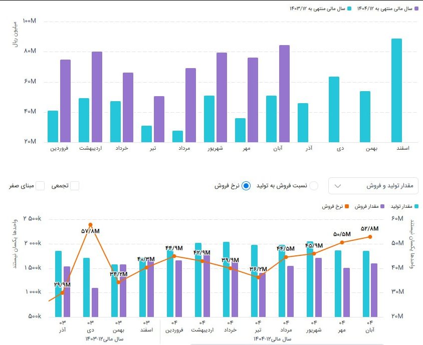 نگاهی به روند فروش نشان میدهد که مبلغ فروش آبان نسبت به میانگین دوره جاری ۲۰ درصد بیشتر بوده است؛ عاملی که قدرت رقابتی شرکت را تثبیت کرده و نشان میدهد تقاضا برای محصولات کلیدی چادرملو همچنان در سطح بسیار مطلوبی قرار دارد. از سوی دیگر، مقایسه فروش آبان با مدت مشابه سال گذشته نشان میدهد که شرکت توانسته ۶۶ درصد رشد درآمدی را محقق کند—افزایشی چشمگیر که ترکیبی از رشد مقداری فروش و افزایش نرخ محصولات اصلی است.