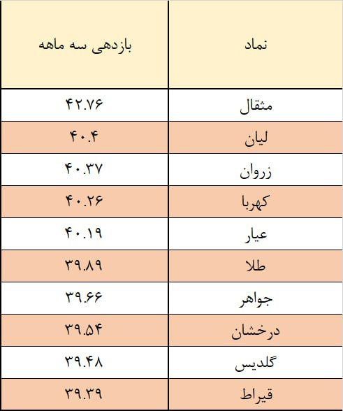 در ردههای بعدی، صندوقهای «لیان»، «زرون»، «کهربا» و «عیار» همگی با بازدهی حدود ۴۰ درصدی در یک کورس فشرده قرار دارند و عملاً بدنه اصلی بازار صندوقهای طلا را تشکیل میدهند. پس از این گروه، نمادهای «طلا»، «جواهر»، «درخشان»، «گلدیس» و «قیرات» با بازدهی بین ۳۹/۲۹ تا ۳۹/۸۹ درصد صف کشیدهاند؛ اعدادی که نشان میدهد تقریباً تمام صندوقها در این دوره زمانی، عملکردی نزدیک به هم و قابلقبول داشتهاند و اختلاف اصلی، در چند درصد اضافهای است که میتواند برای سرمایهگذار حرفهای تعیینکننده باشد.