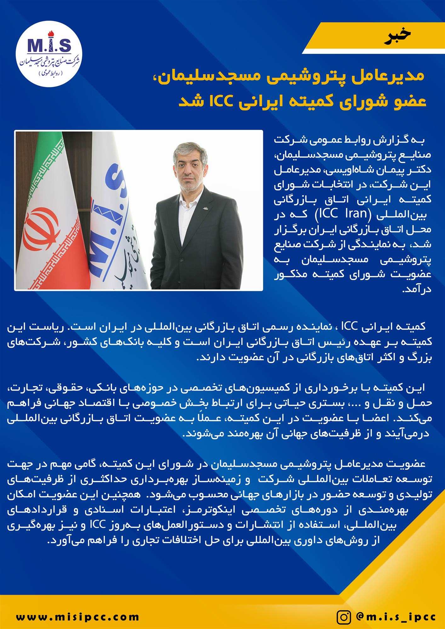 عضویت مدیرعامل پتروشیمی مسجدسلیمان در شورای این کمیته، گامی مهم در جهت توسعه تعاملات بینالمللی شرکت و زمینهساز بهرهبرداری حداکثری از ظرفیتهای تولیدی و توسعه حضور در بازارهای جهانی محسوب میشود. همچنین این عضویت امکان بهرهمندی از دورههای تخصصی اینکوترمز، اعتبارات اسنادی و قراردادهای بینالمللی، استفاده از انتشارات و دستورالعملهای بهروز ICC و نیز بهرهگیری از روشهای داوری بینالمللی برای حل اختلافات تجاری را فراهم میآورد.